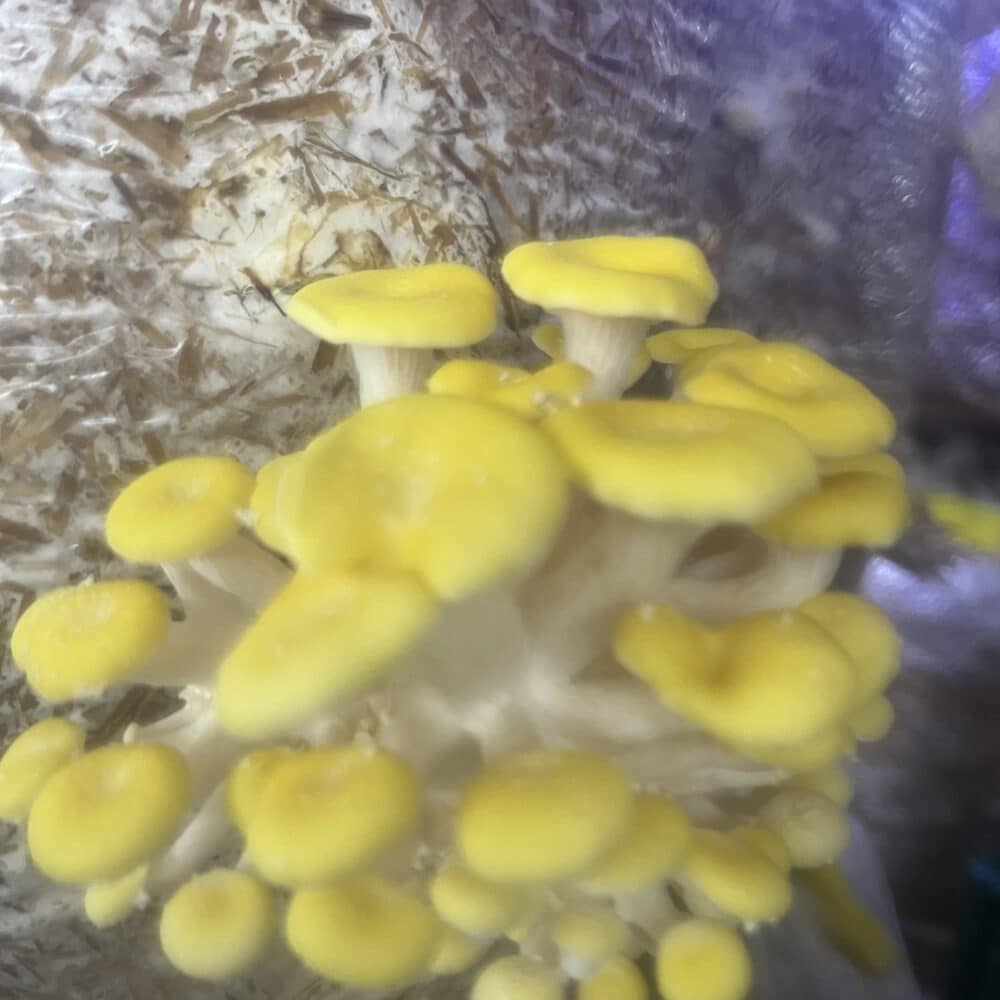 Svampene gror ud i ”bræk”. Når første-brækket er overstået, vil posen holde pause, før et andet-bræk vil vokse frem. Du kan vælge at lade andet-brækket komme ud af de oprindelige førstebræks-huller, eller du kan skære nye huller andre steder på blokken. Forsøg dig frem.